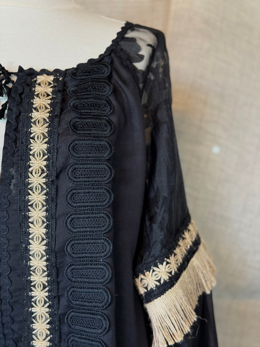 Black Romanian Blouse with Fringe Details