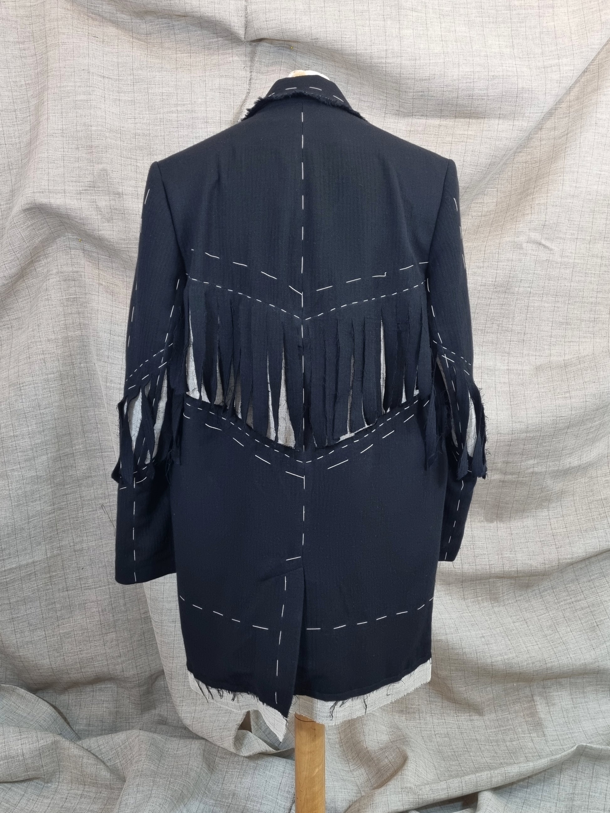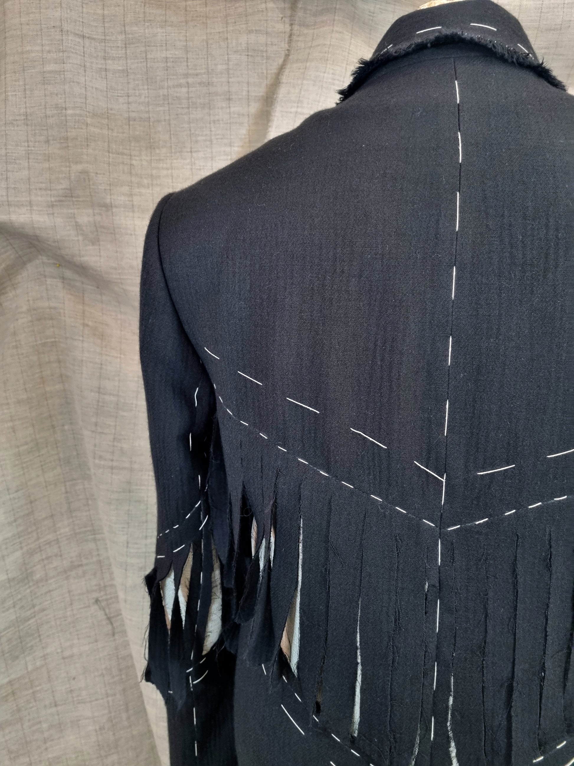 Black Jacket With Fringe And Handmade Decorative Stitching