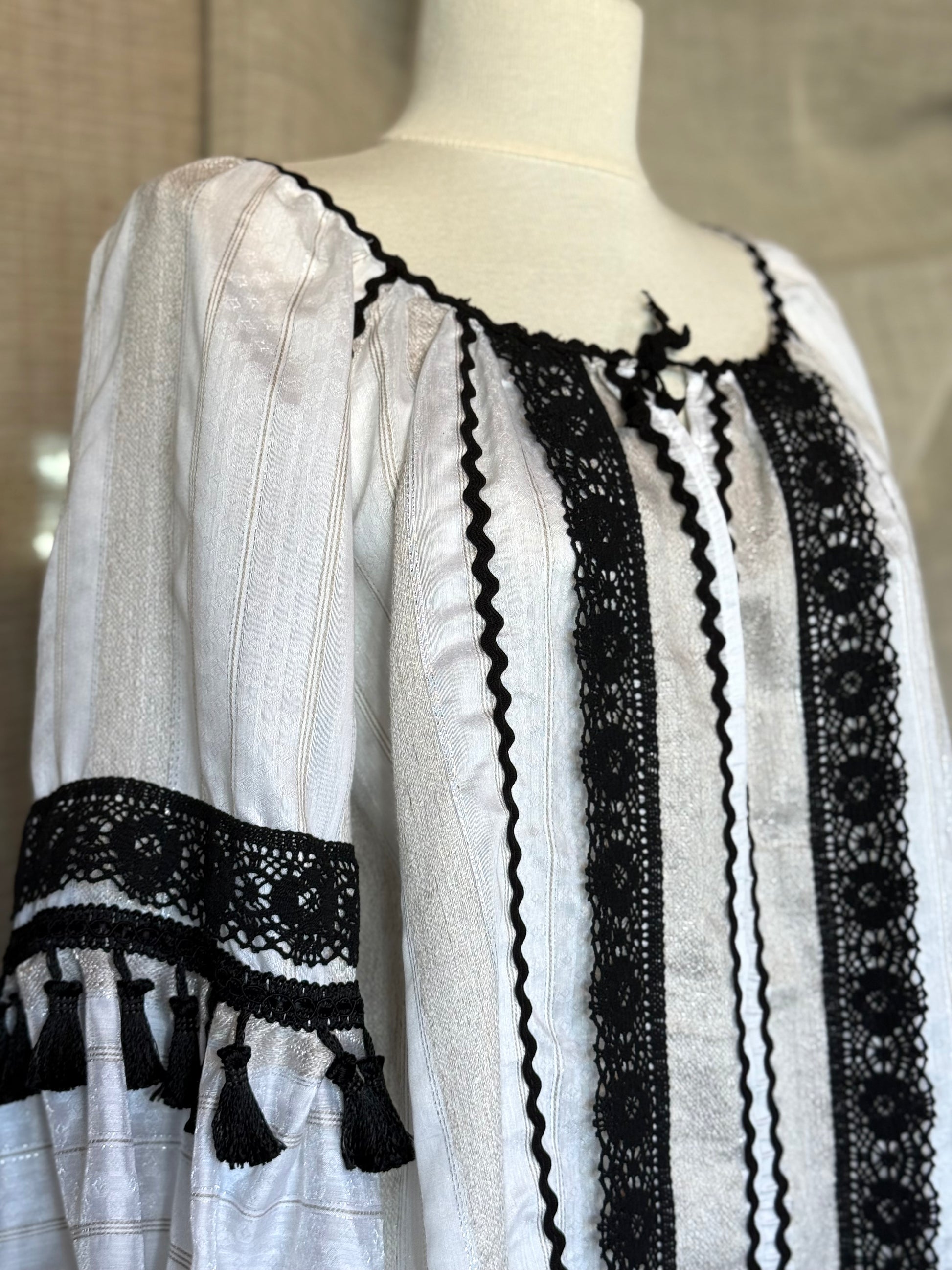 Romanian Blouse With Beige and Black Details