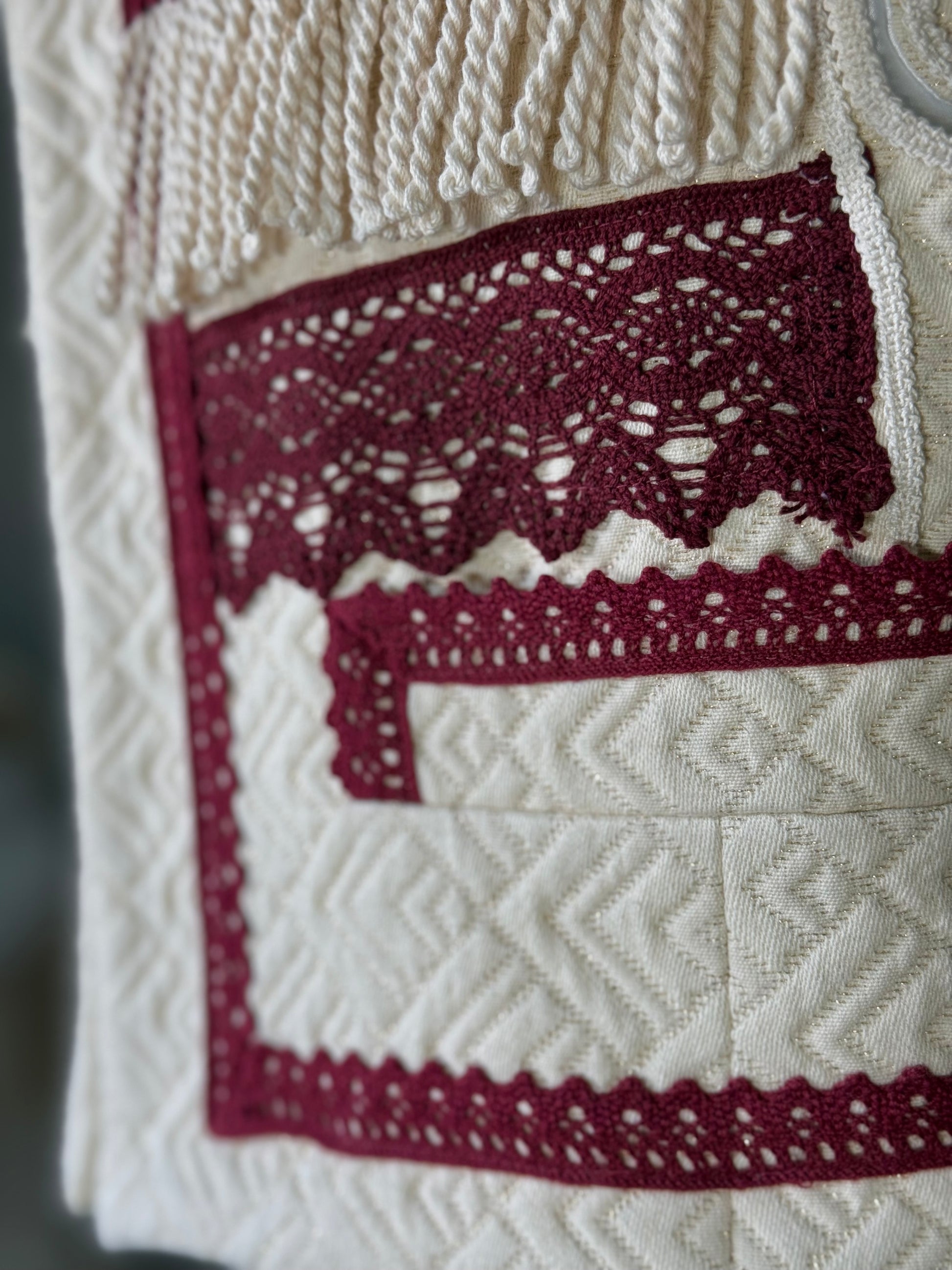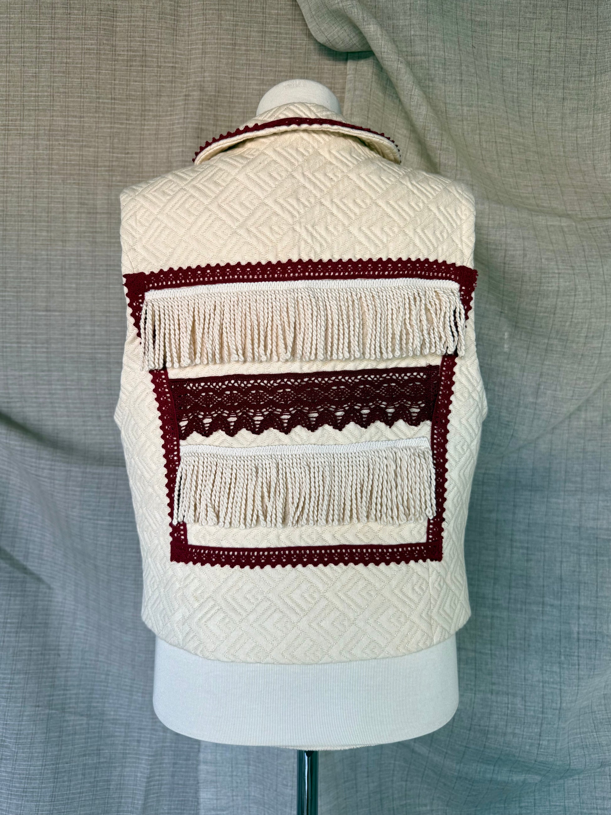 The vest is handmade by the members of our team, so keep in mind the design on the item you order might differ slightly from the one in the photo.