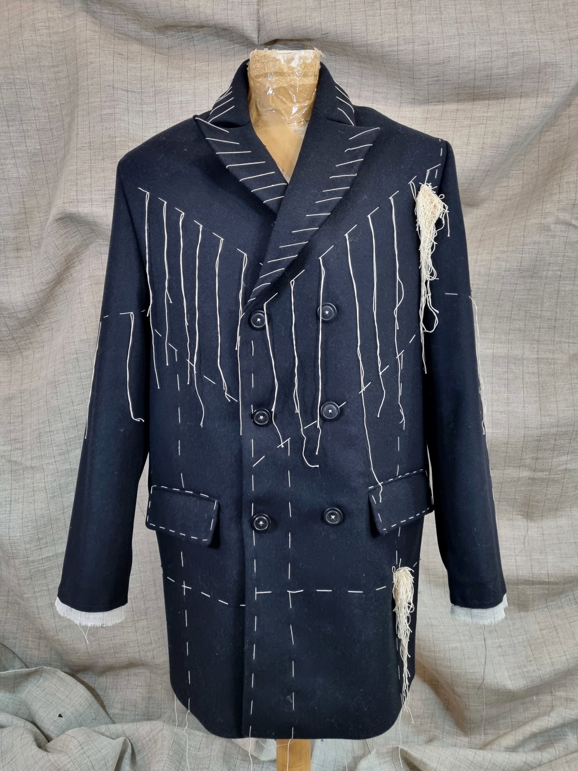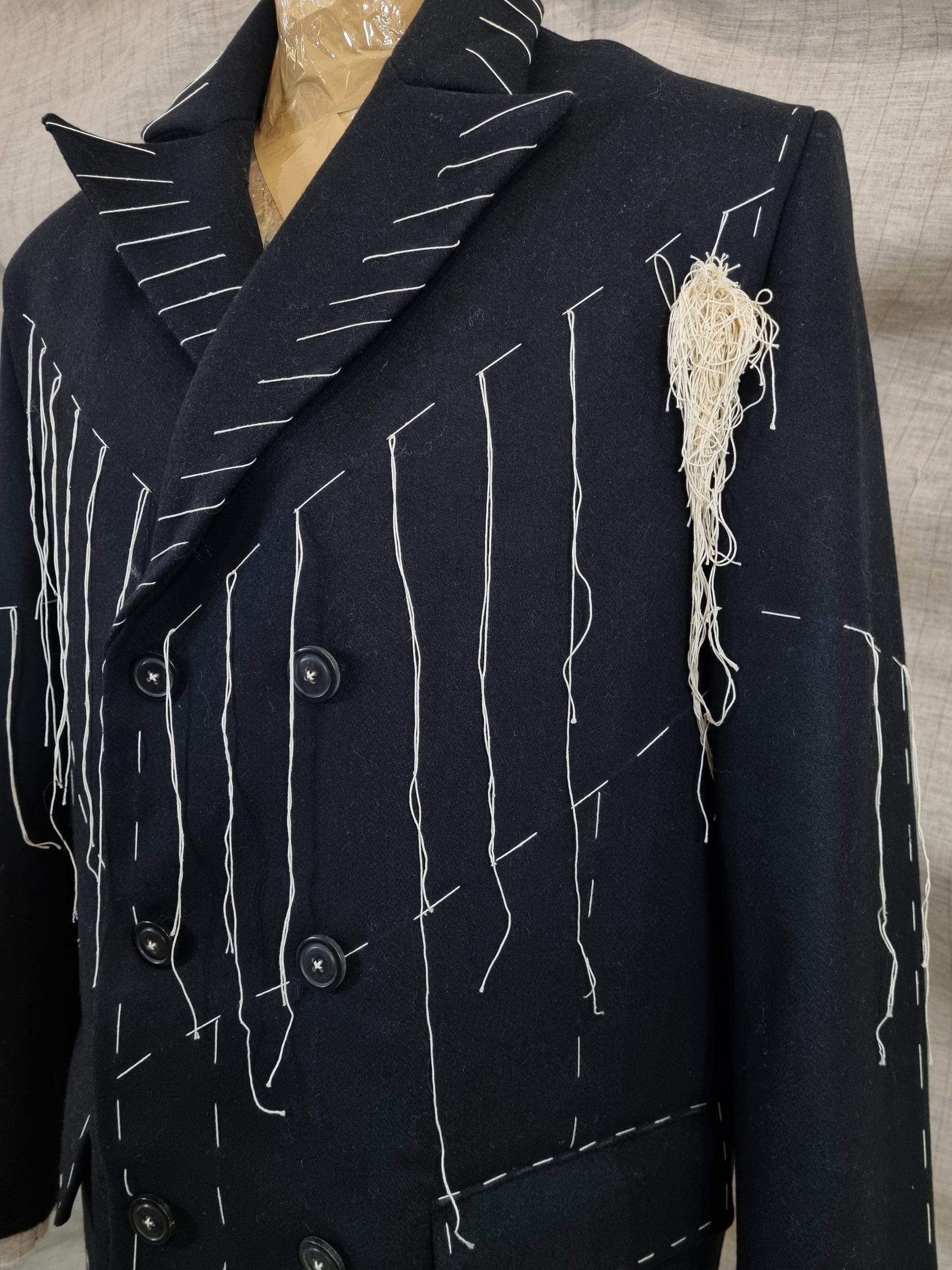 Double-Breasted Jacket With Handmade Decorative Stitching
