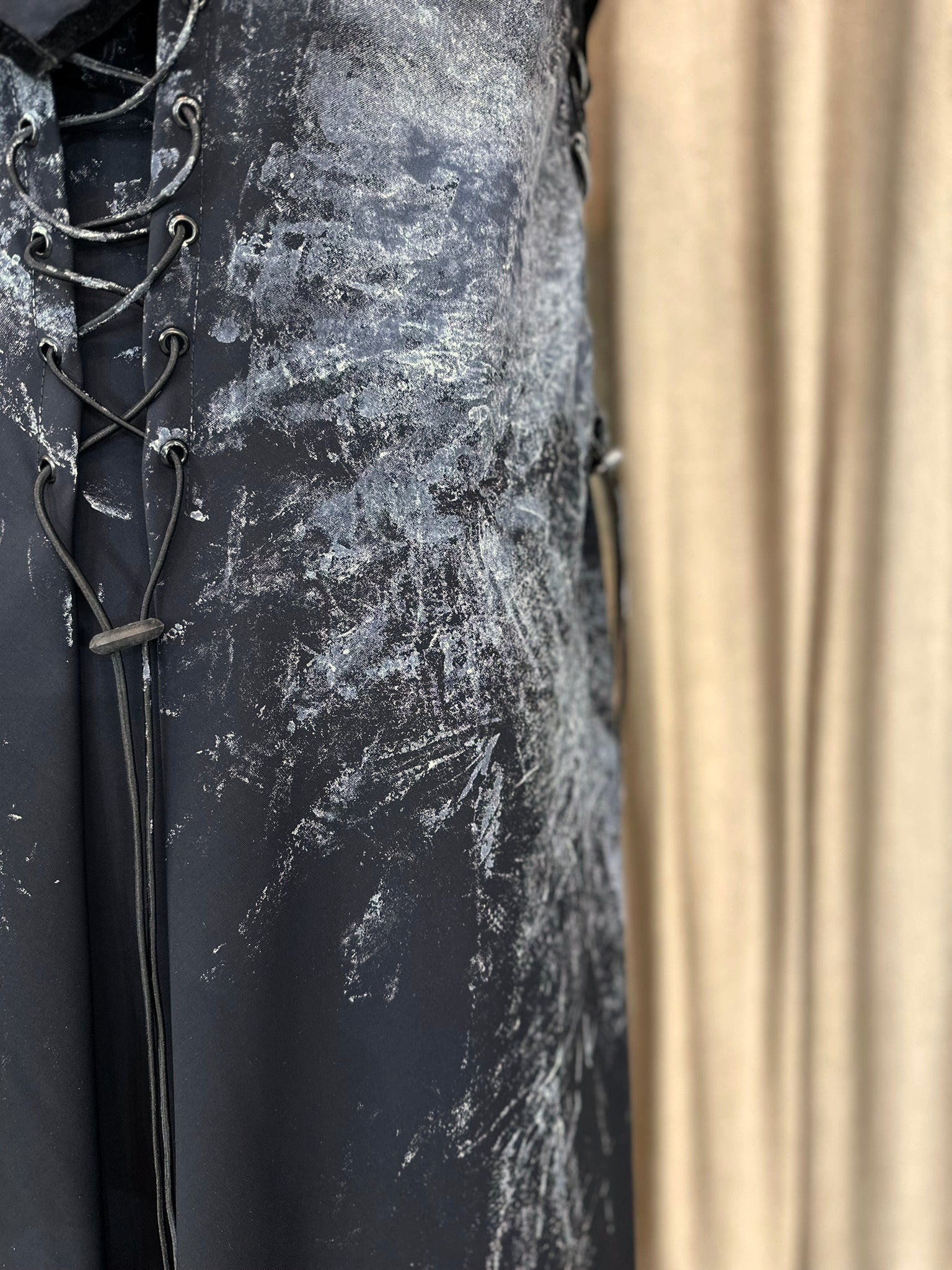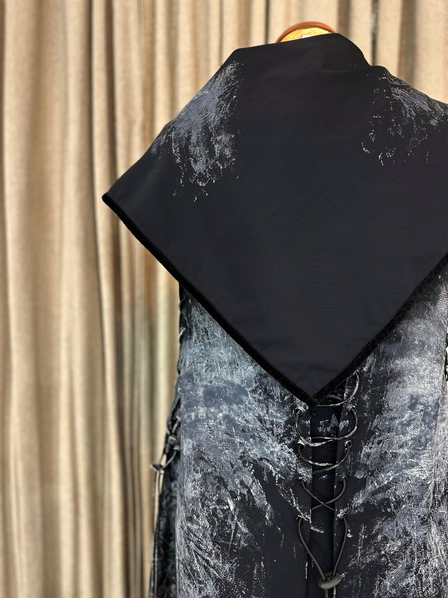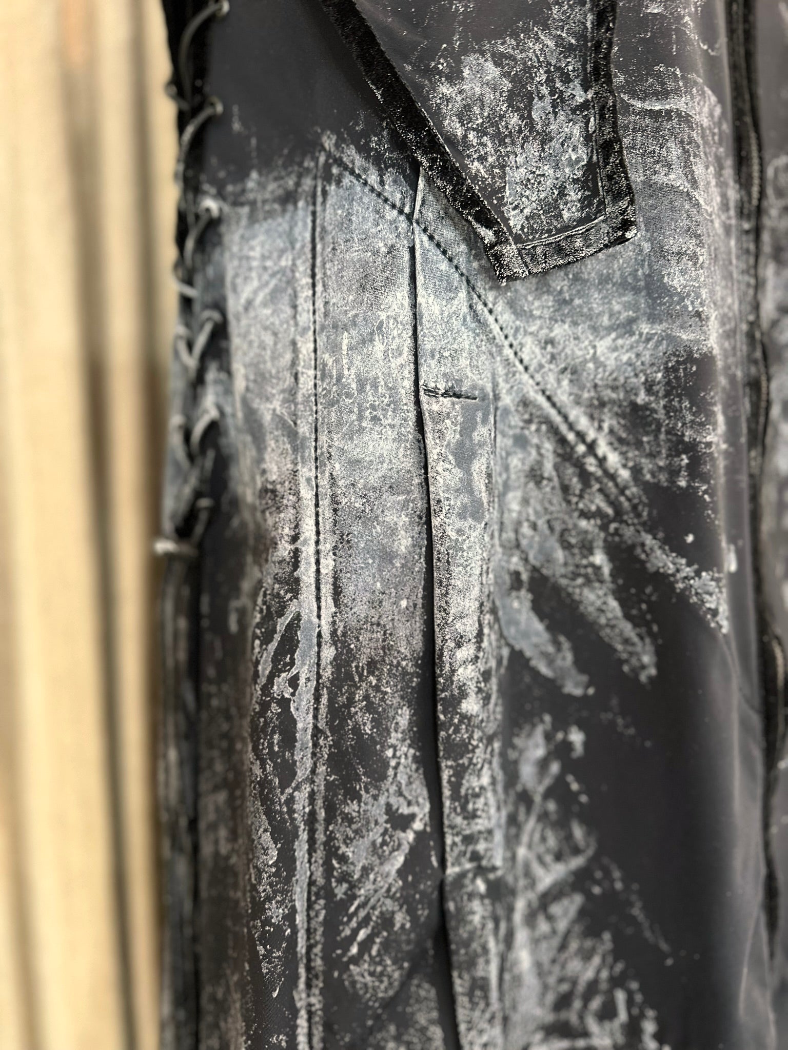 Add some artistic flair to your wardrobe with our hand-painted black adjustable vest! The unique hand-painted design creates a cool frosted effect, making it a perfect addition for this season's look. Adjustable for a comfortable fit.