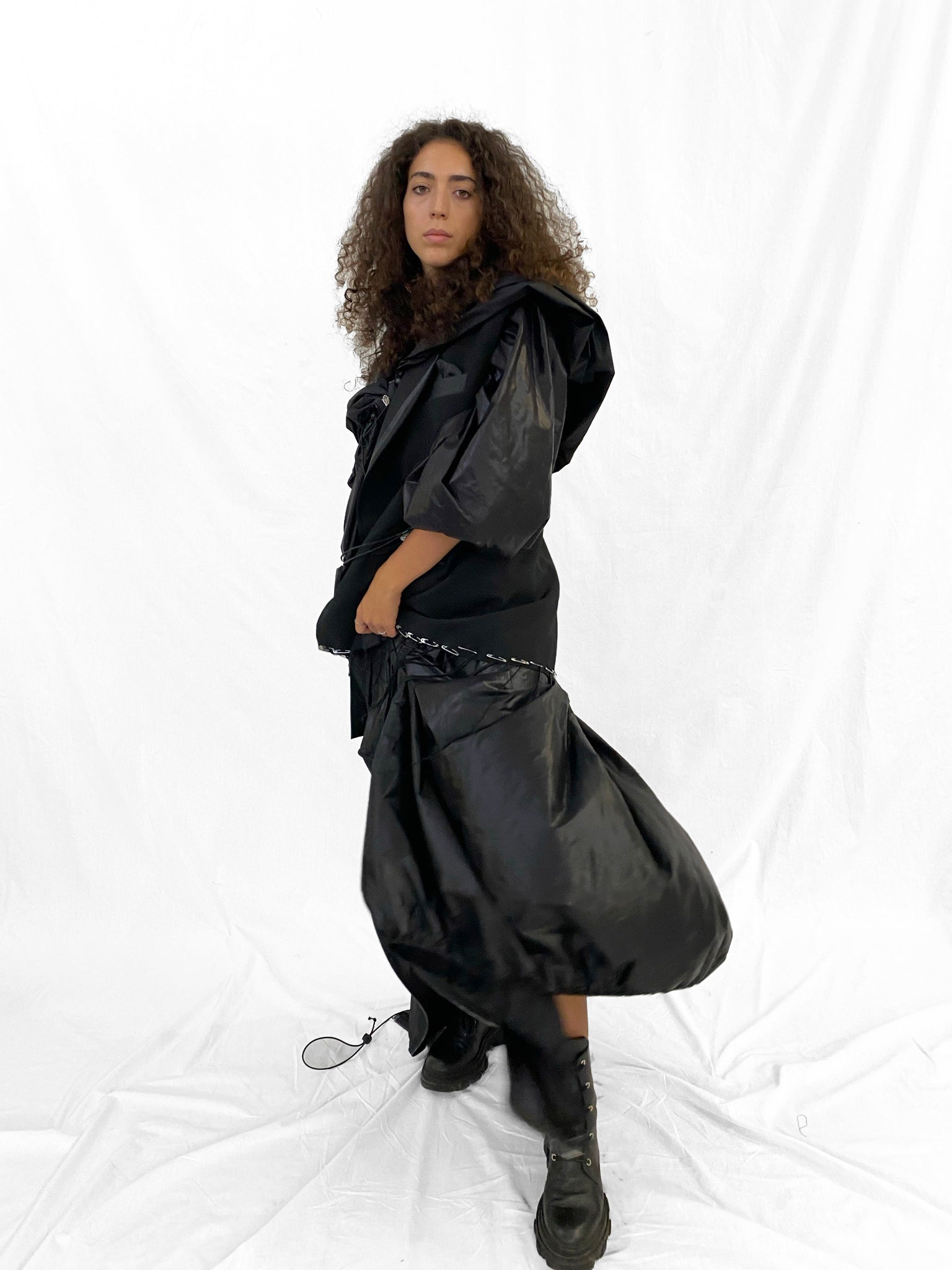 This raincoat can be worn in 30 or more different ways, from a coat to a dress, skirt, or even trousers. Trust your creativity!