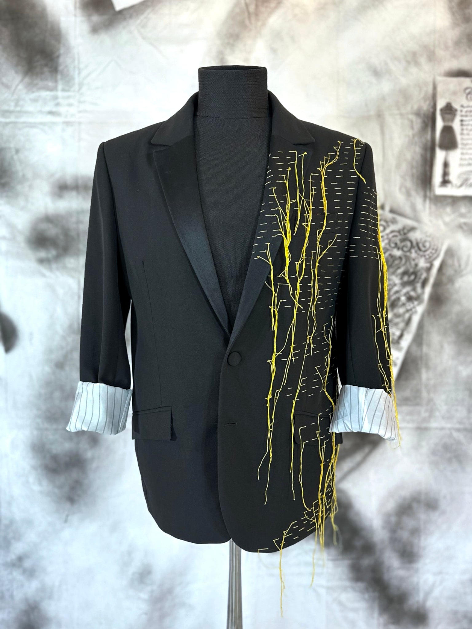 Make a statement with this unique Puzzle Unisex Thread Blazer. Handmade with expert craftmanship, you'll feel confident and stylish in this one-of-a-kind piece.