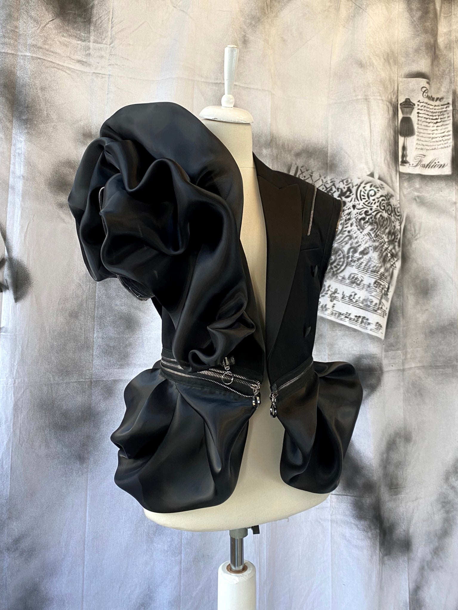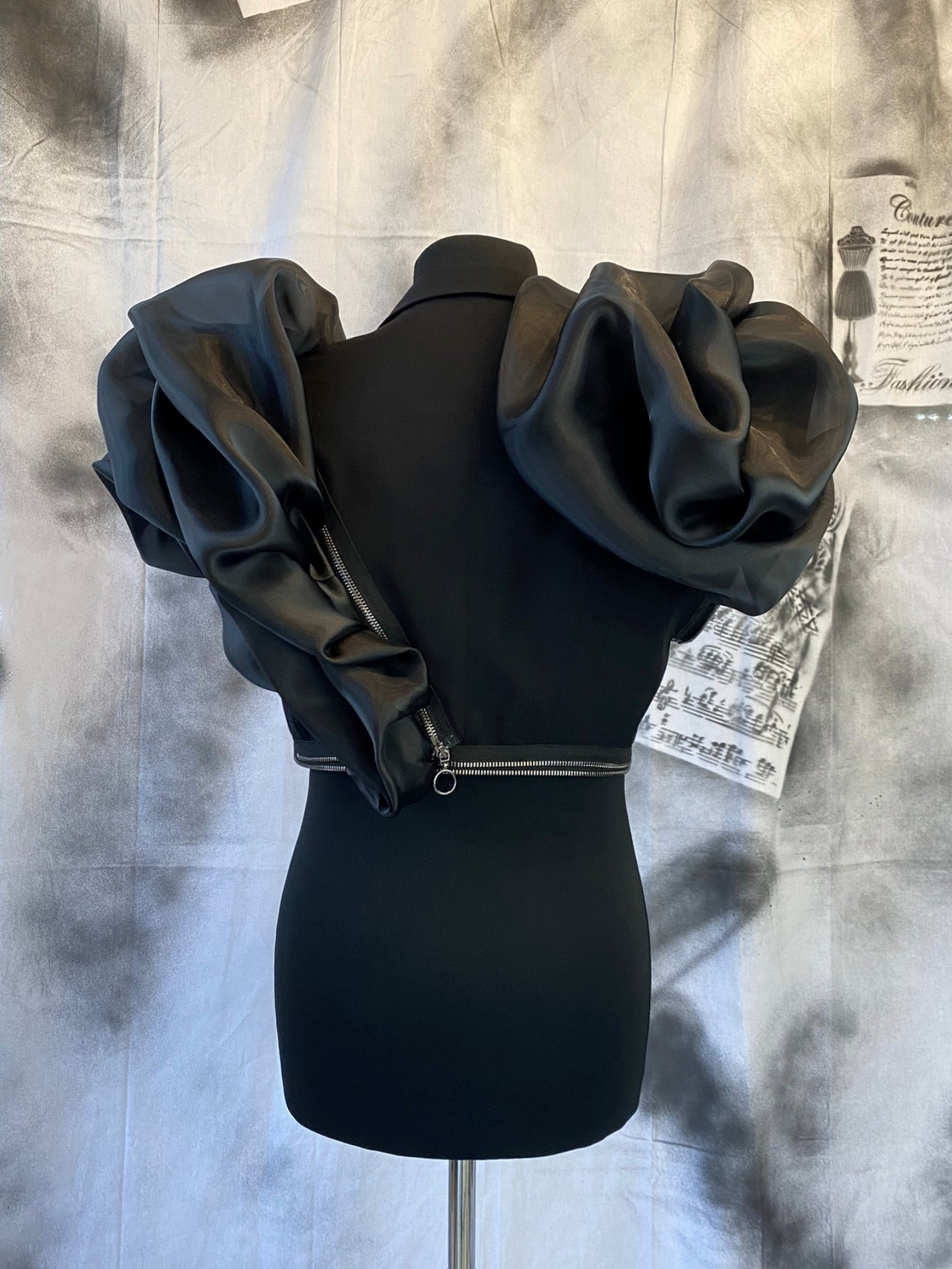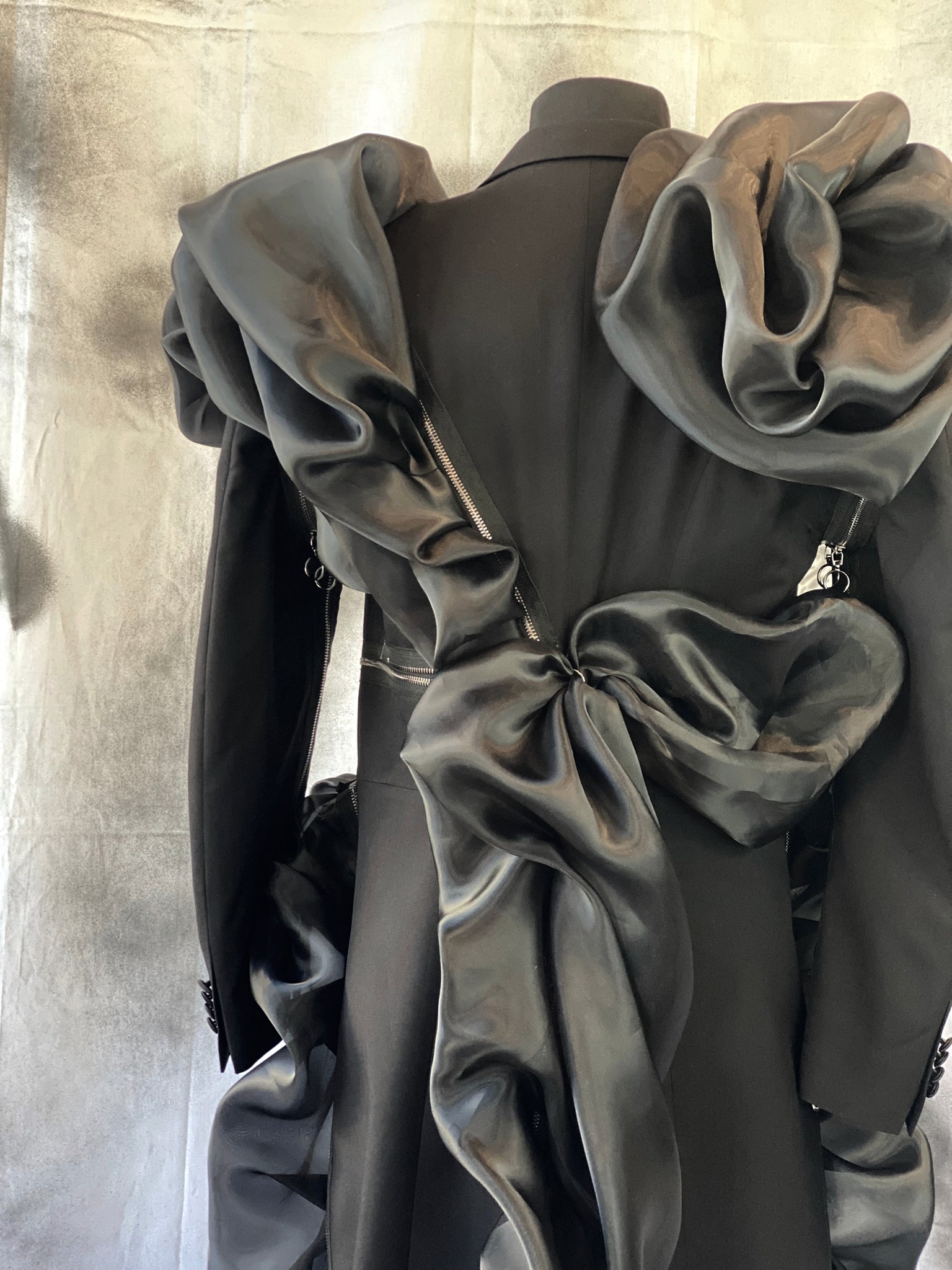 Puzzle Tailcoat With Organza Details And Metalic Zippers