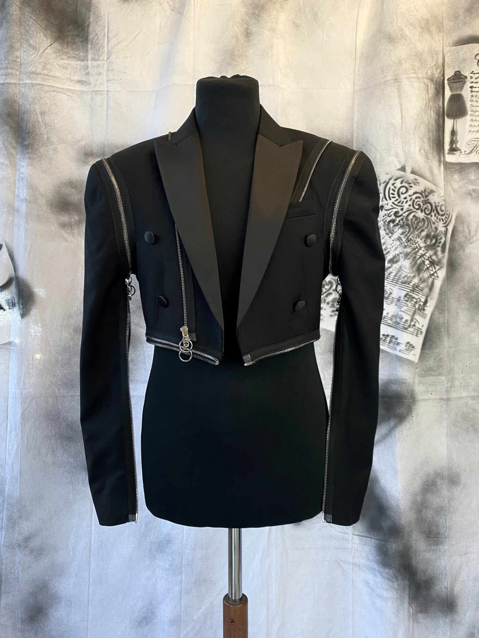The tailcoat can be worn with or without sleeves, with or without the organza frills and can even be left as a cropped jacket.