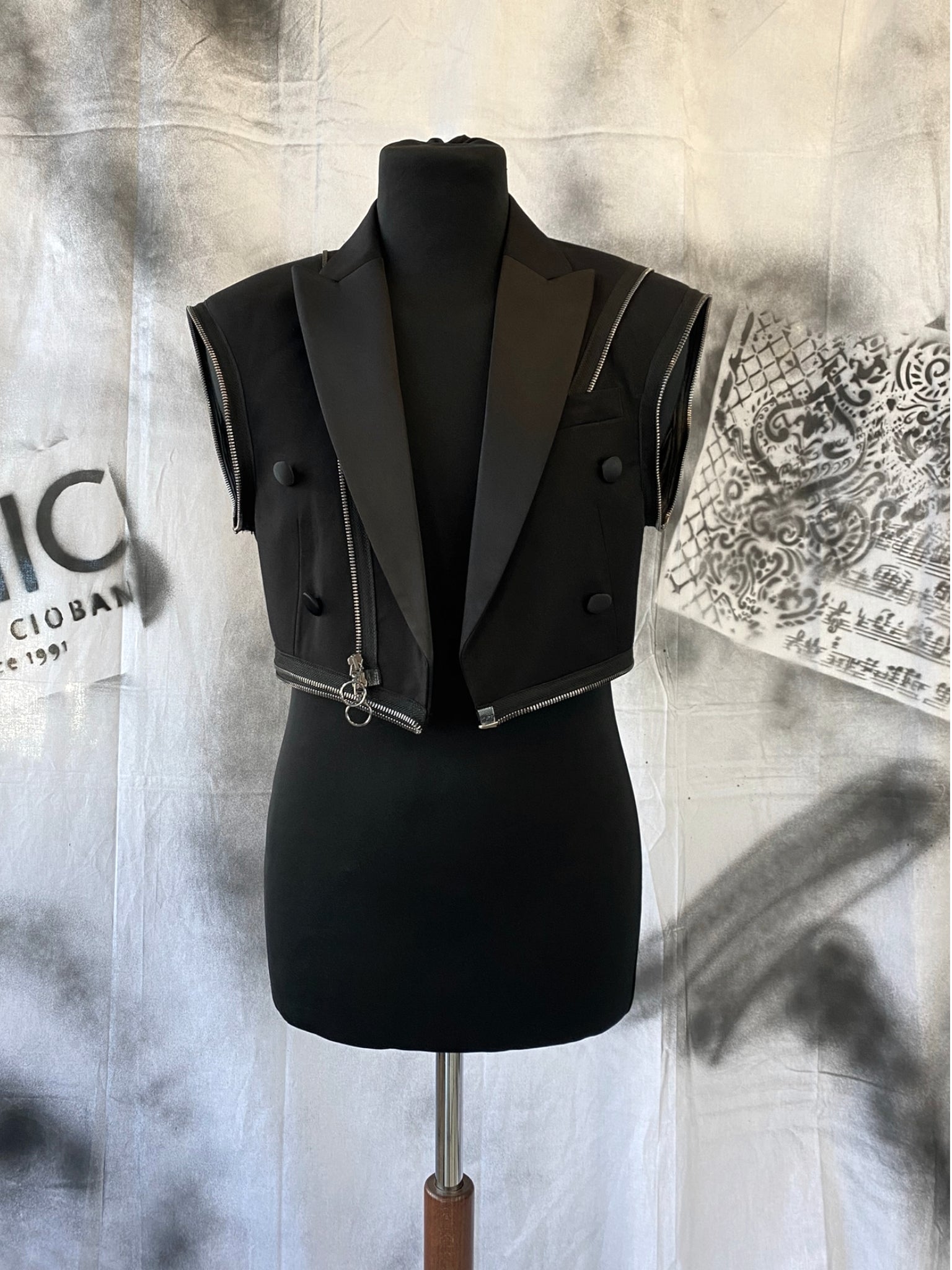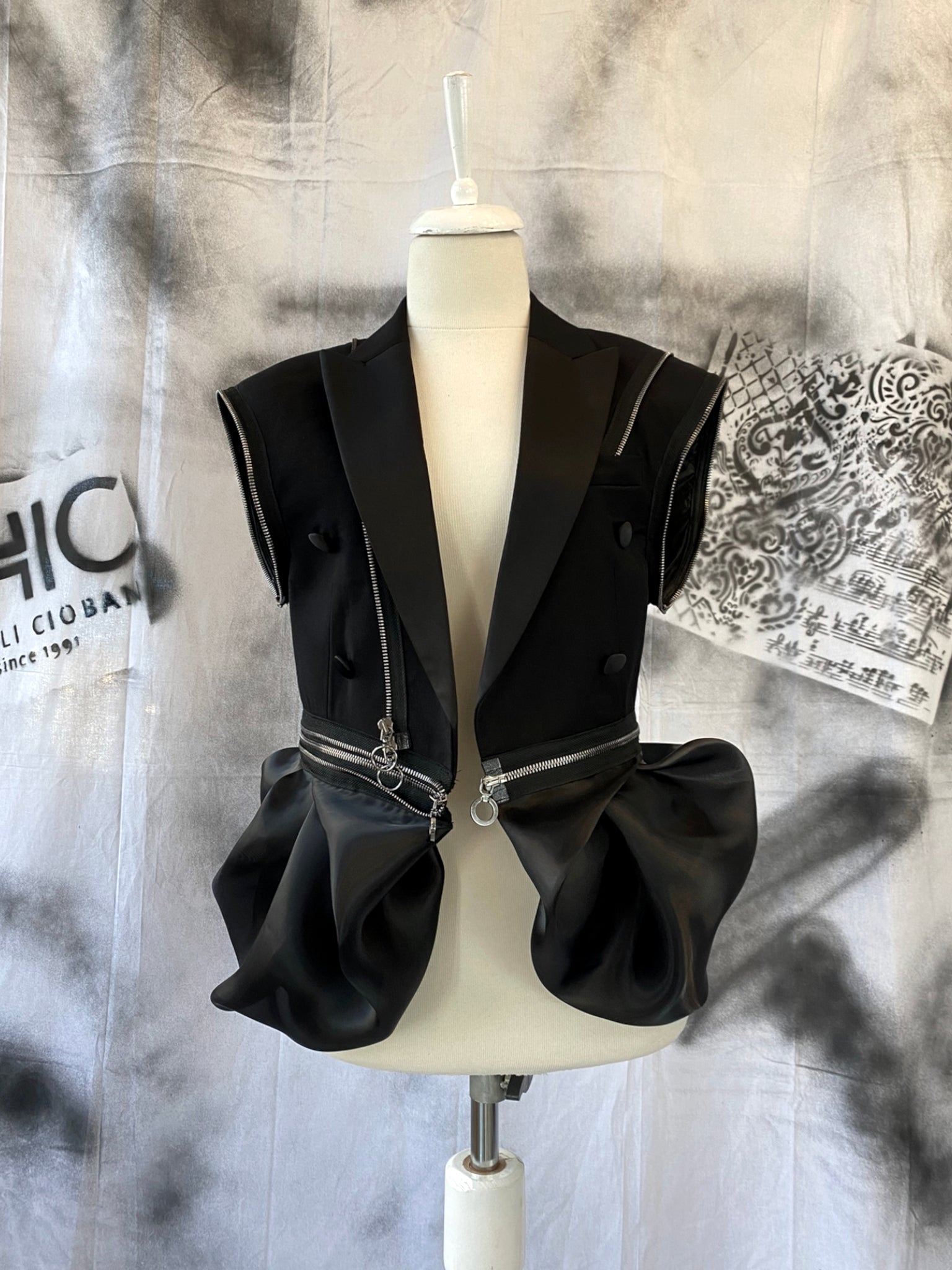 Unisex tailcoat with metallic zippers from the Puzzle S/S'23 Collection. This item is a must have, as it can be deconstructed and reconstructed in multiple ways, this way creating numerous looks from casual to edgy to elegant.