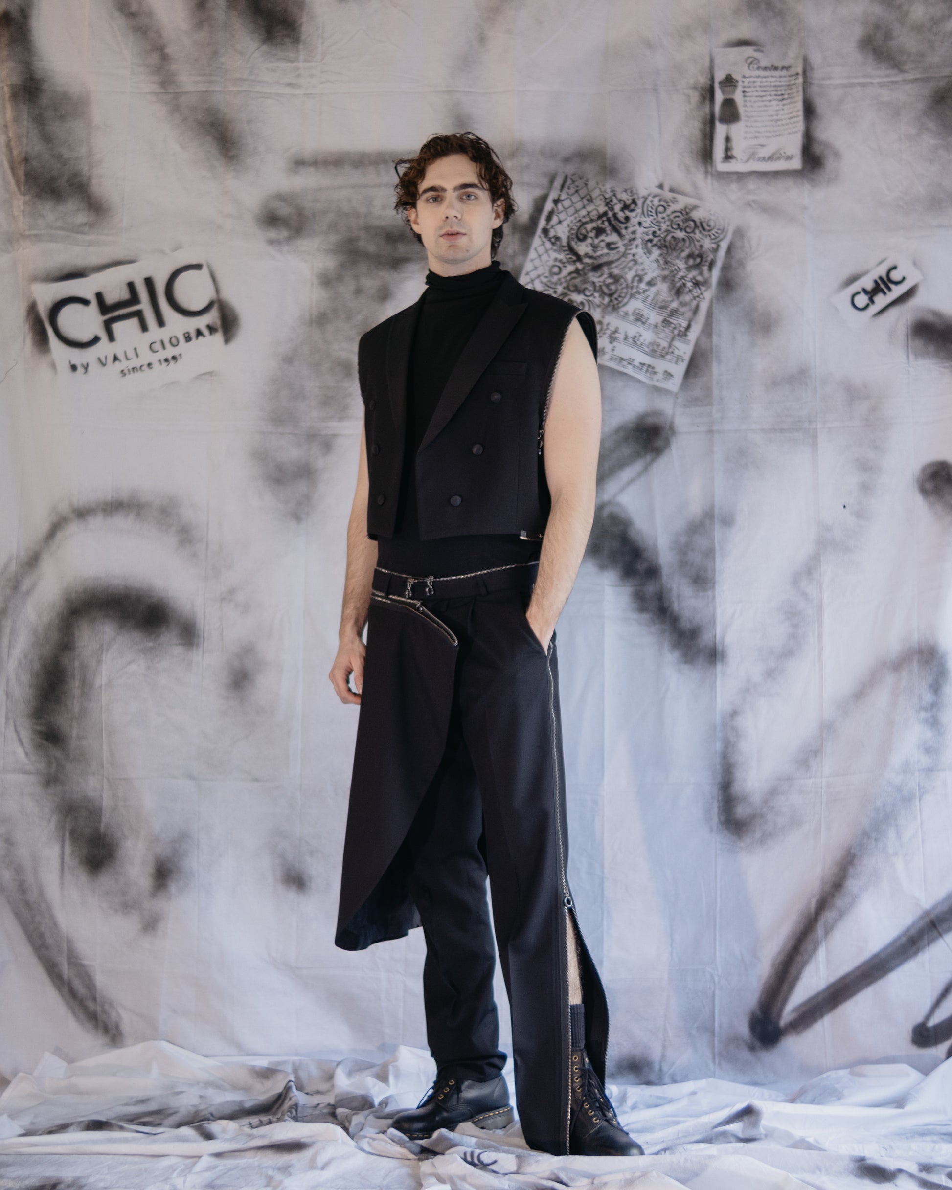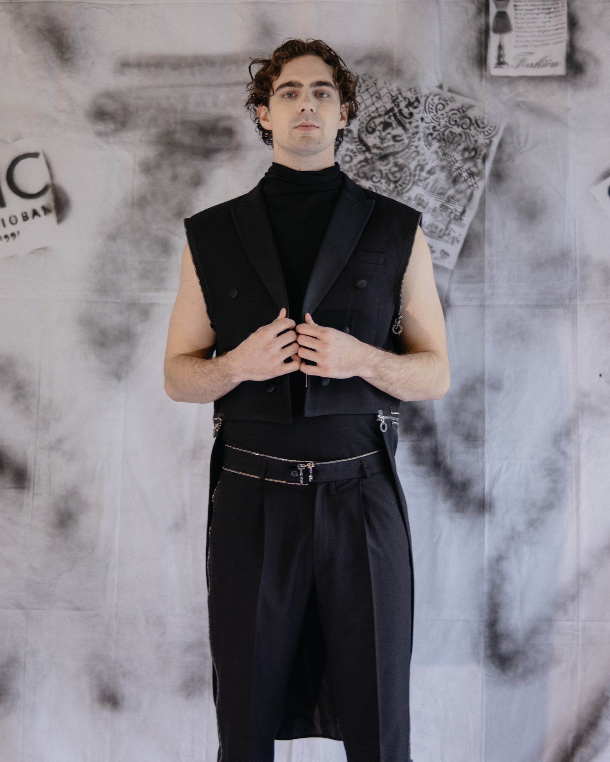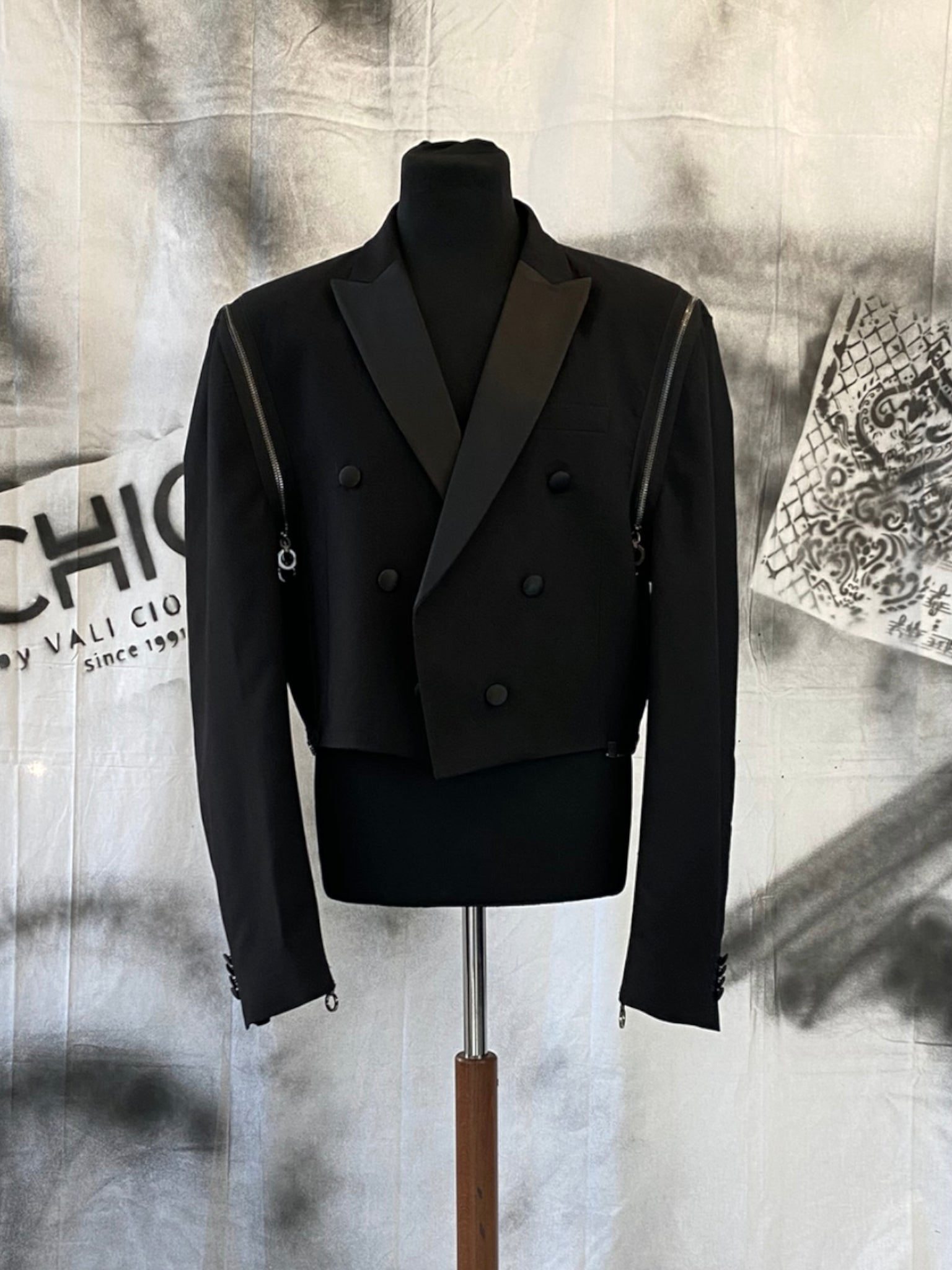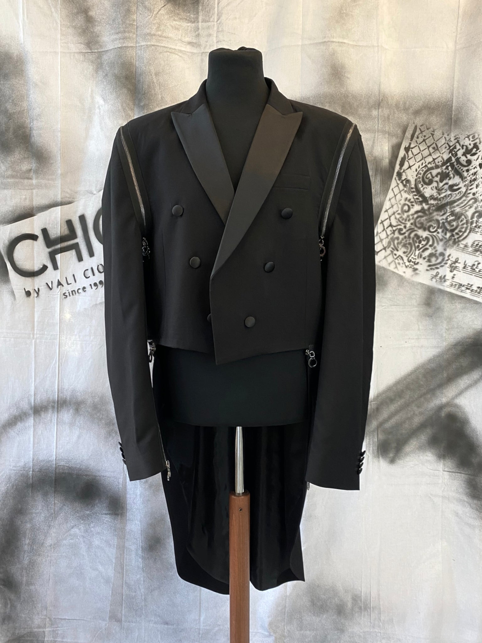 Unisex tailcoat with metallic zippers from the Puzzle S/S'23 Collection.