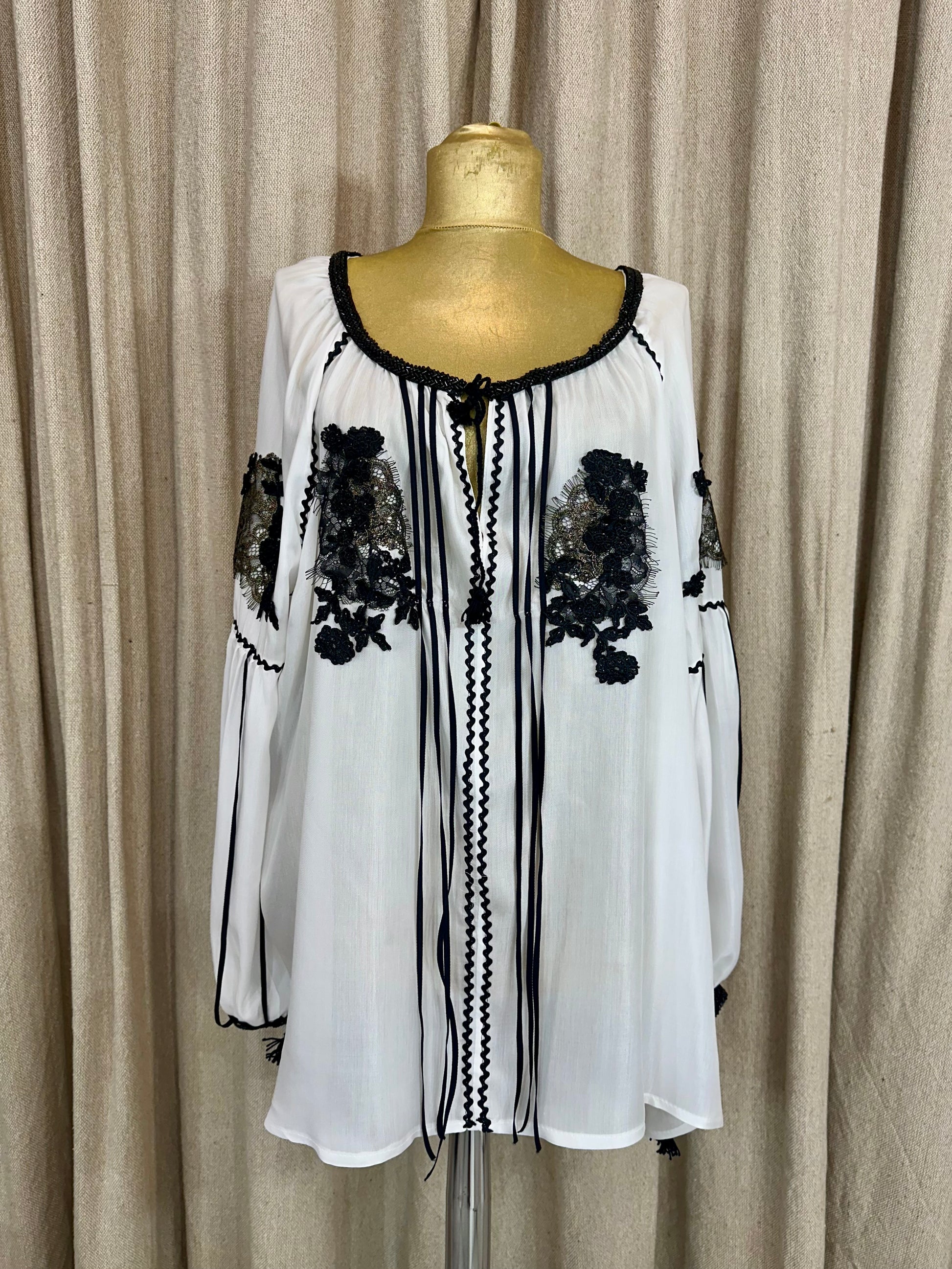 White Romanian Blouse with Black Details
